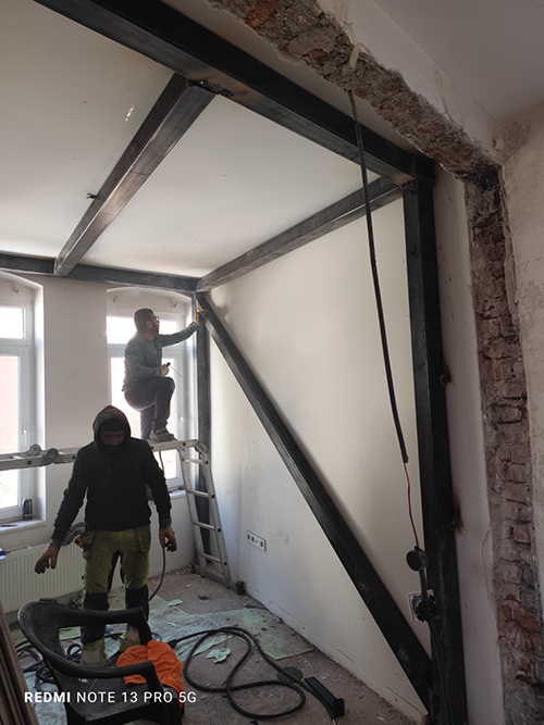 Çelik güçlendirme, mevcut bir binanın taşıyıcı sistemini çelik profiller, levhalar ve bağlantı elemanlarıyla destekleyerek yapının yük taşıma kapasitesini artırma işlemidir. Betonarme elemanların tek başına yeterli olmadığı durumlarda uygulanan bu yöntem, özellikle deprem performansını ciddi oranda yükseltir.